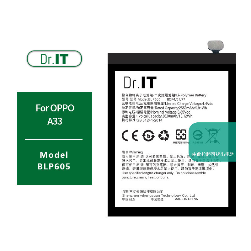 | Certificering: | CE.UL,ROHS,MSDS.UN38.3 | Modelnummer: | OPPO BLP605 |
