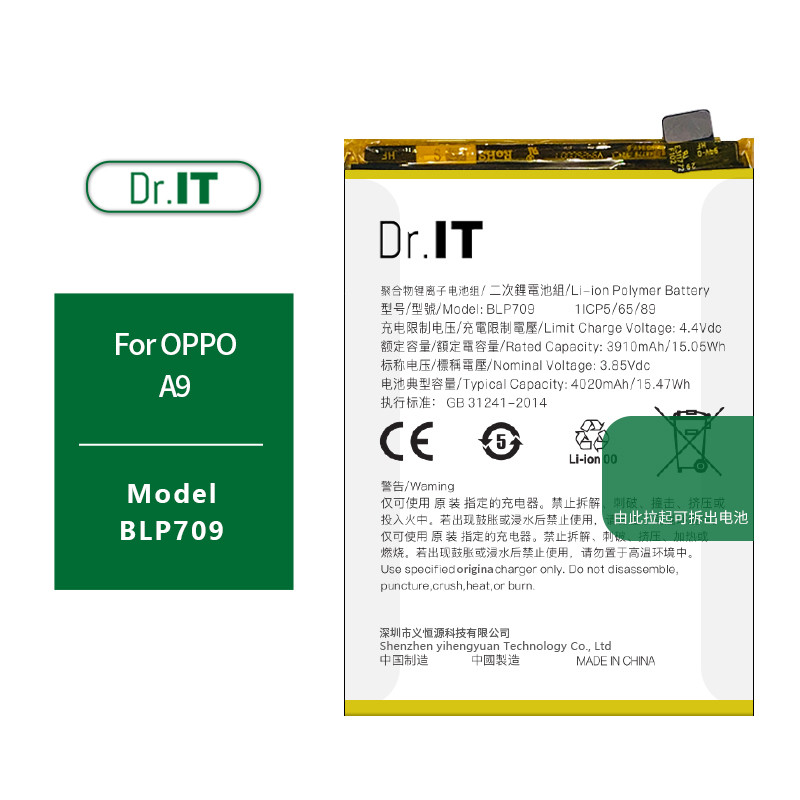 OEM ODM BLP709 Oppo A9 de Norm van Ce ROHS van de Batterijcapaciteit 4020mAh