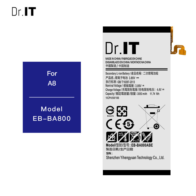 | Productnaam: | De Batterij van Samsung A8 | Nominaal Voltage: | 3.85V |